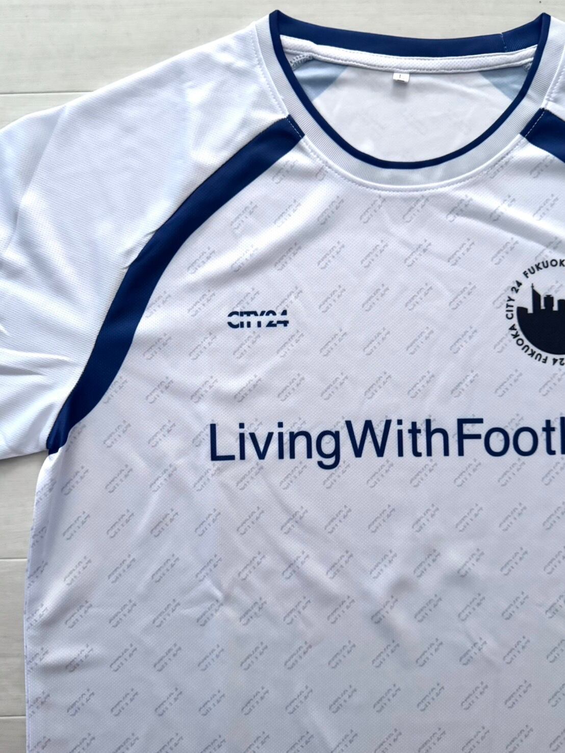 フロントにはクラブフィロソフィー「Living With Football」をプリント。